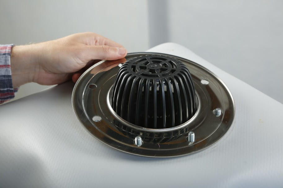 Покрівельна воронка зі збільшеним корпусом на трубу діаметром DN110, висотою Н600мм з листоуловлювачем, з притискним фланцем з нержавіючої сталі з ПВХ-фартухом. Призначена для збору та відведення води з поверхні плоскої покрівлі. Встановлюється 1шт. на 100м2.